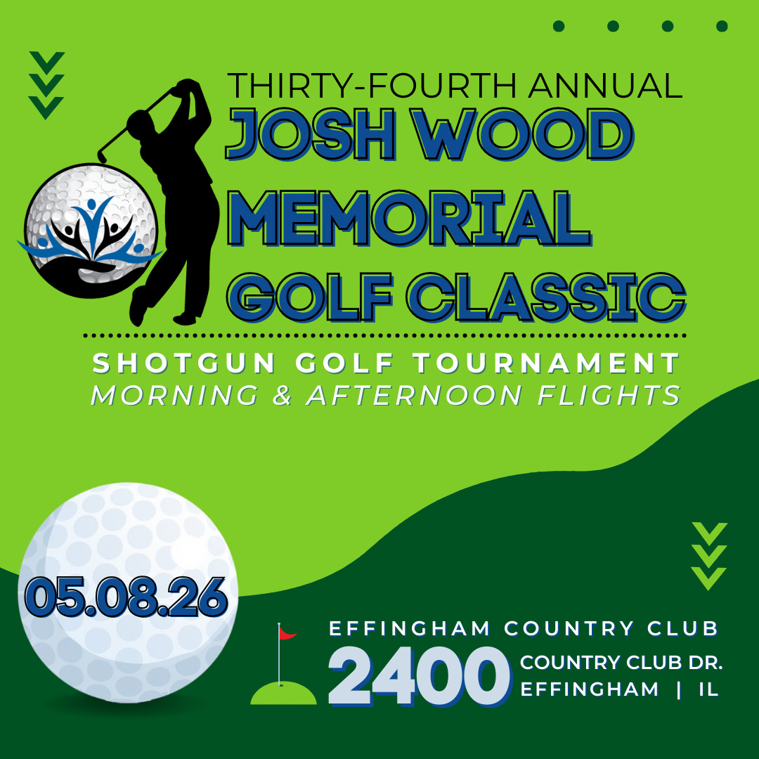 Join us Friday, May 8, at the Effingham Country Club for the 2026 Josh Wood Memorial Golf Classic! Registration and our complimentary lunch start at 11:30 and tee-off will be at 12:30 for the afternoon flight. Morning flight participants will tee-off at 7:30 am. Join the fun during the award ceremony following the tournament with complimentary hors d’oeuvres.